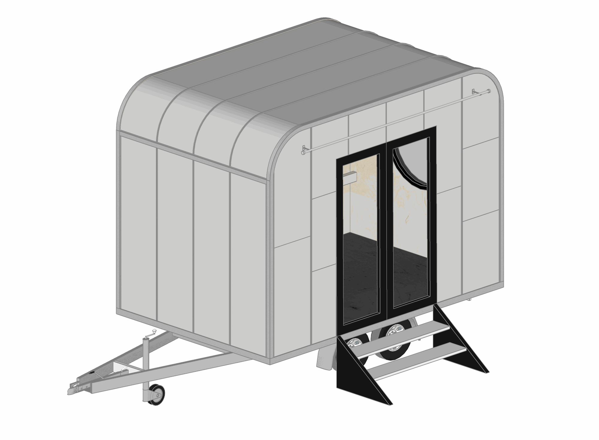 De havde behov for en vogn der både kunne rumme et kontor, hvorfra de kunne udvikle forestillingerne samt holde teaterstykker fra vognen. Vognen blev bygget i aluminium, som giver den et neutralt udtryk. PÅ den måde kan den nemt transformeres fra forestilling til forestilling. Det var også et af deres ønsker, efter at have prøvet de forskellige vogne.