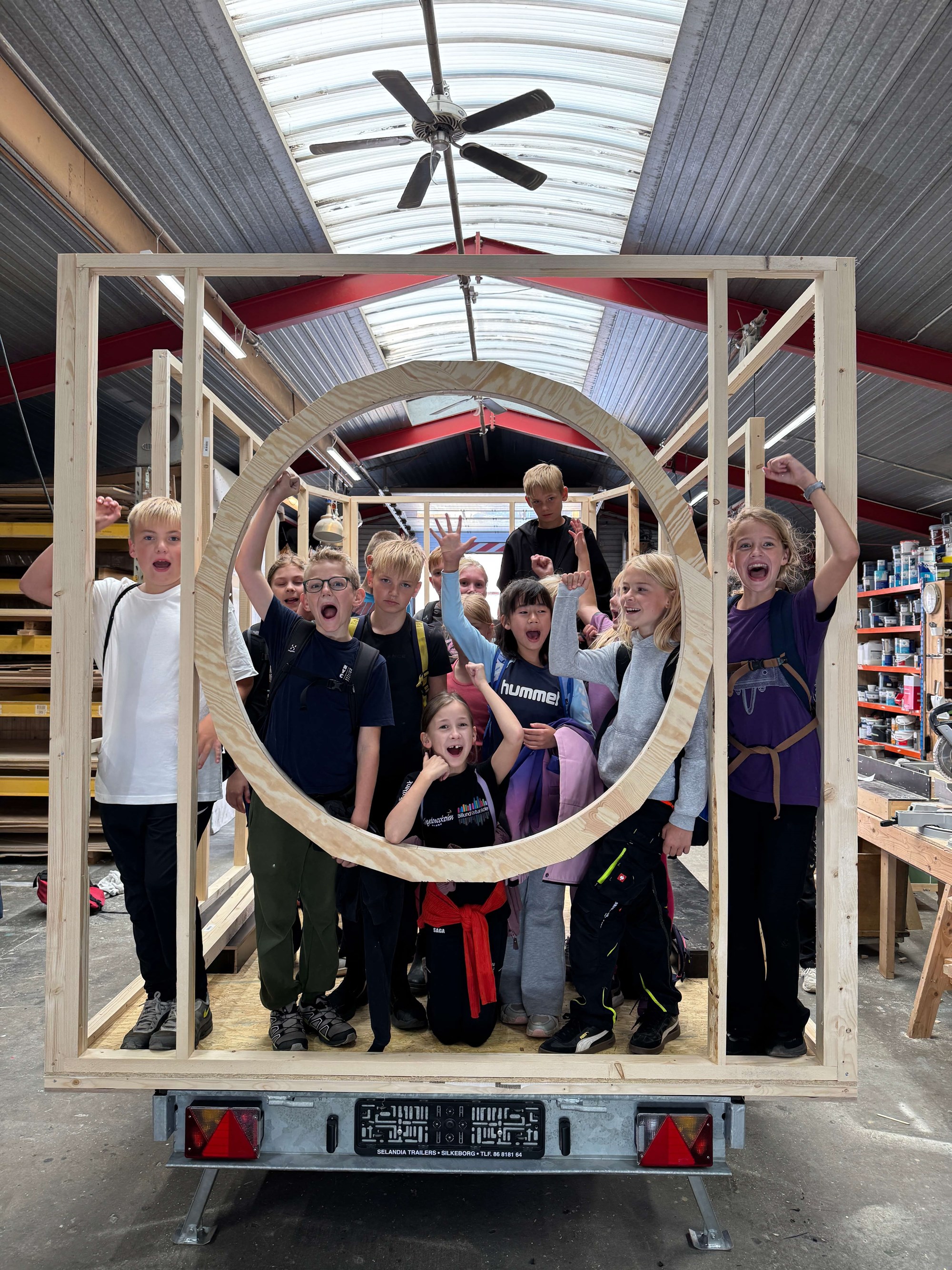 Projektet er skabt sammen med elever fra Grindsted Privatskole og Børnehaven Lindetræet som begge ligger i Billund Kommune, Børnenes Hovedstad. Vi har besøgt børnene, og de har besøgt os på havnen i Aarhus, i et undervisningsforløb som har sat sit tydelige præg på vognens udformning og udsmykning.