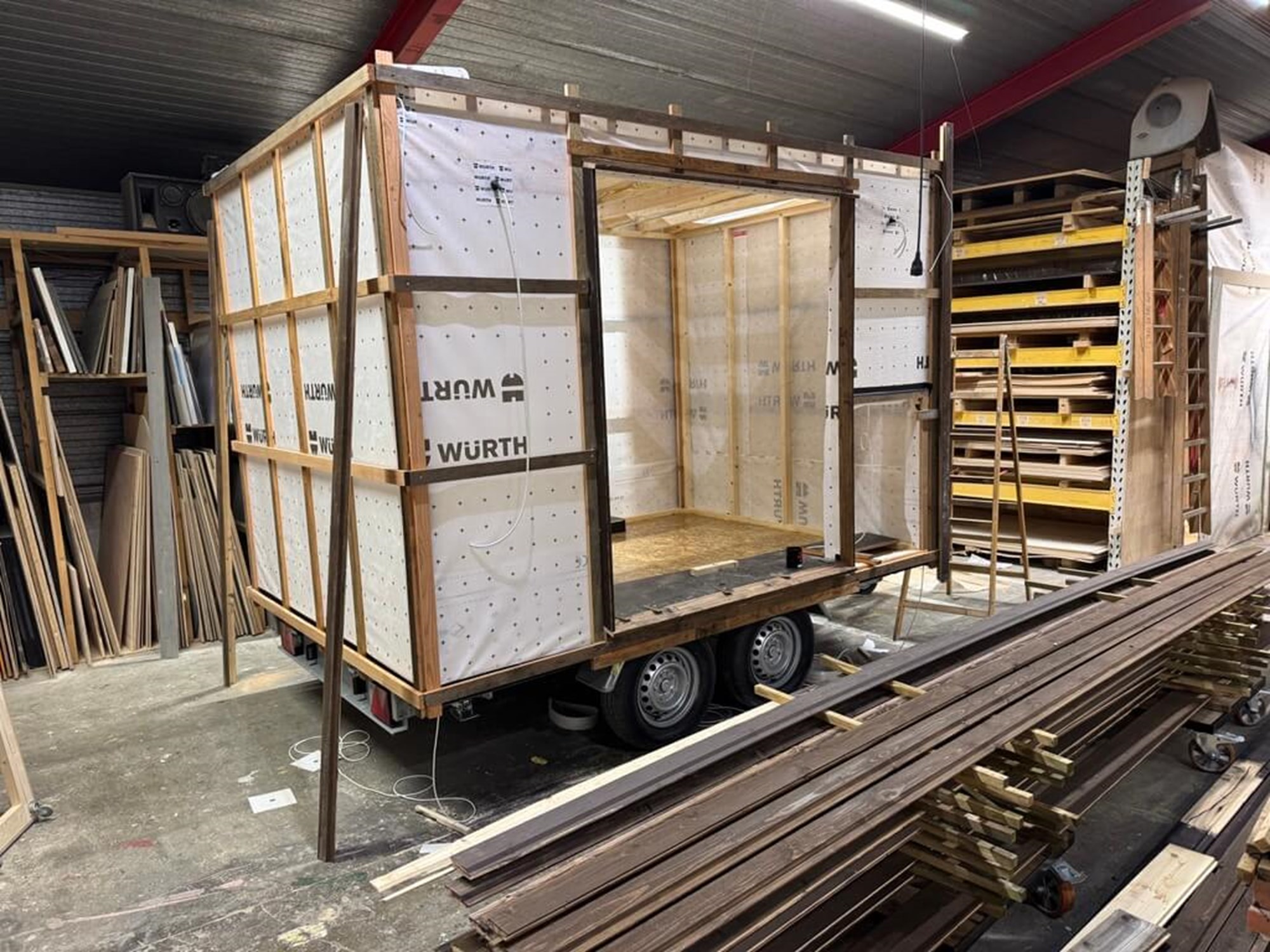 Vognen er en af vores mellemstørrelser og er indrettet efter de unges ønske om at kunne reparere cykler i og omkring klubhuset. Vi har hængt værktøjstavler op, gjort klar til installation af trykluft, og monteret stativer til reparation og transport.
