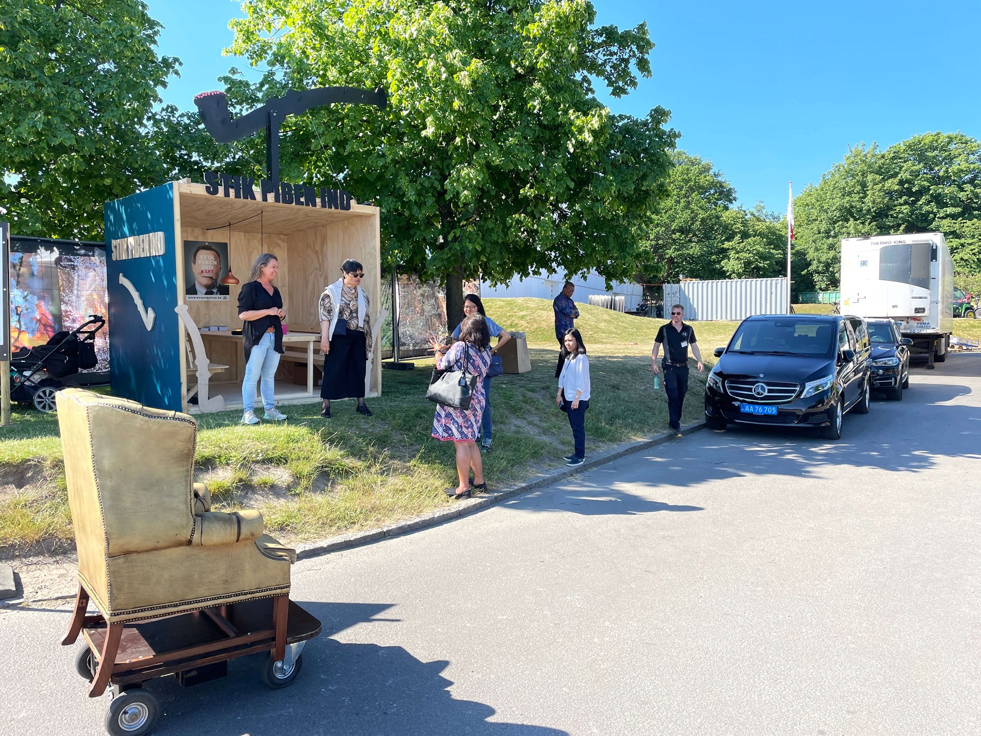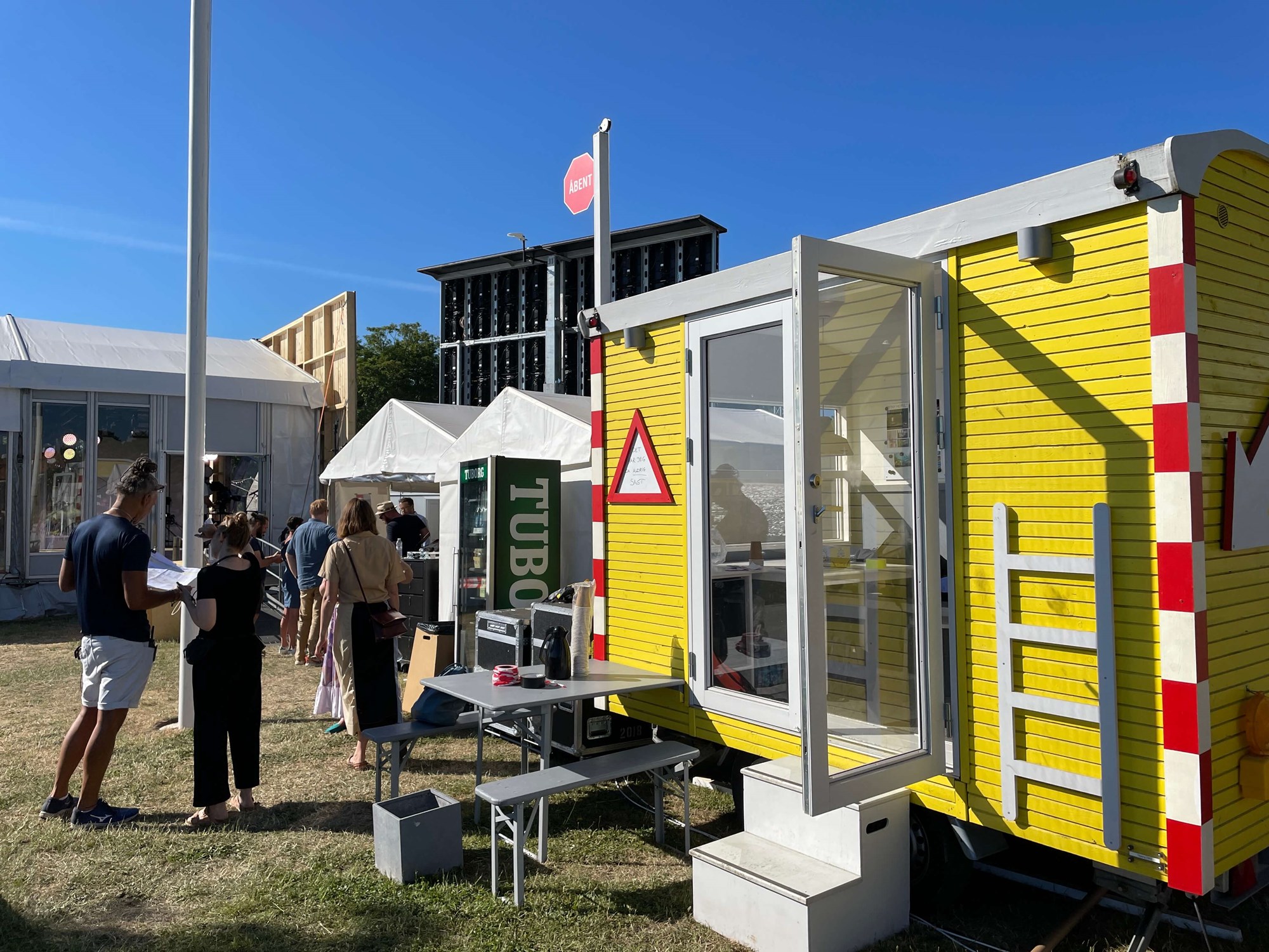 Vi har også haft flere andre vogne med, nogle for at danne ramme om den store scenes backstageområde, andre har fungeret som udgangspunkt for formidling for både politiske partier og kommunikationsaktører.