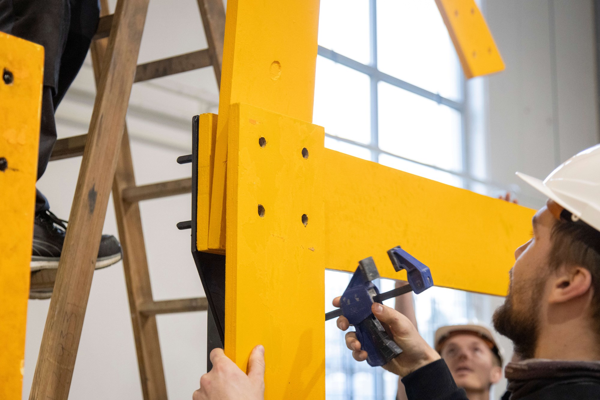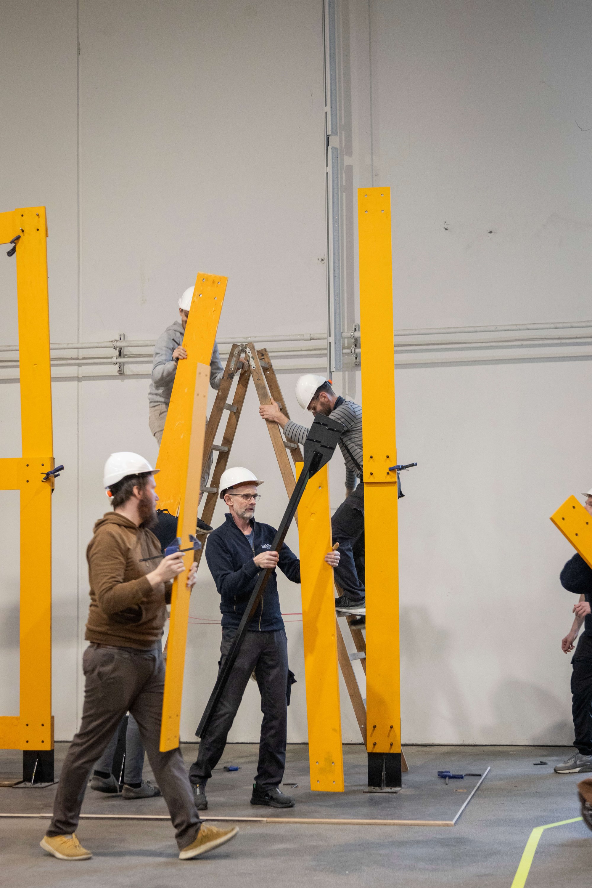 Seks hold med hver tolv deltagere tager ansvar for tiden i fire-timers skift. Hvert minut skal konstrueres, nedbrydes og genopbygges — et præcist og levende system, der kun fungerer, når alle bidrager.