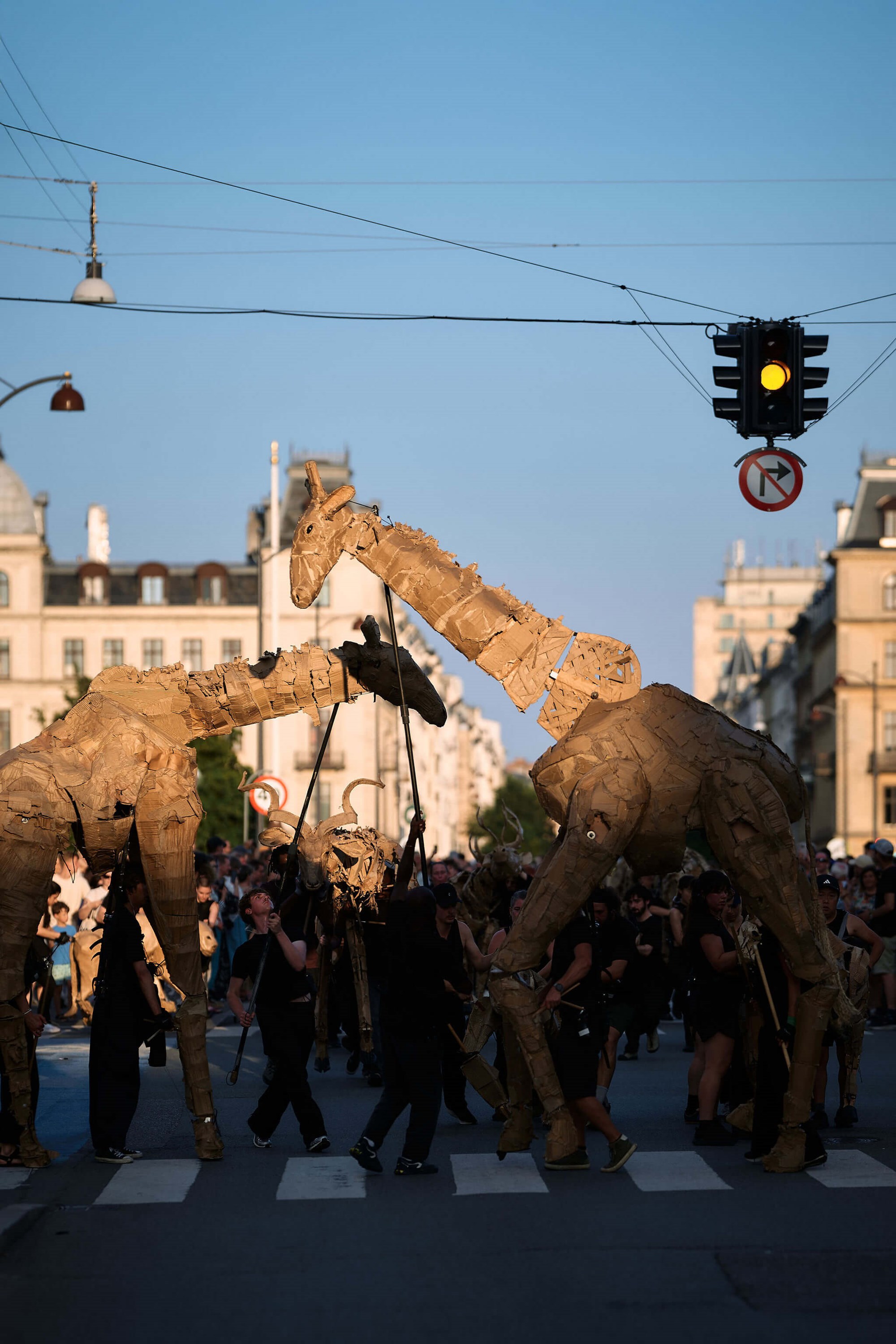 De majestætiske væsner blev bragt til live af en række internationale dukkeførere, som rejste fra Congo i Centralafrika til Polarcirklen i Norge for at gøre opmærksom på de menneskeskabte klimaforandringer.