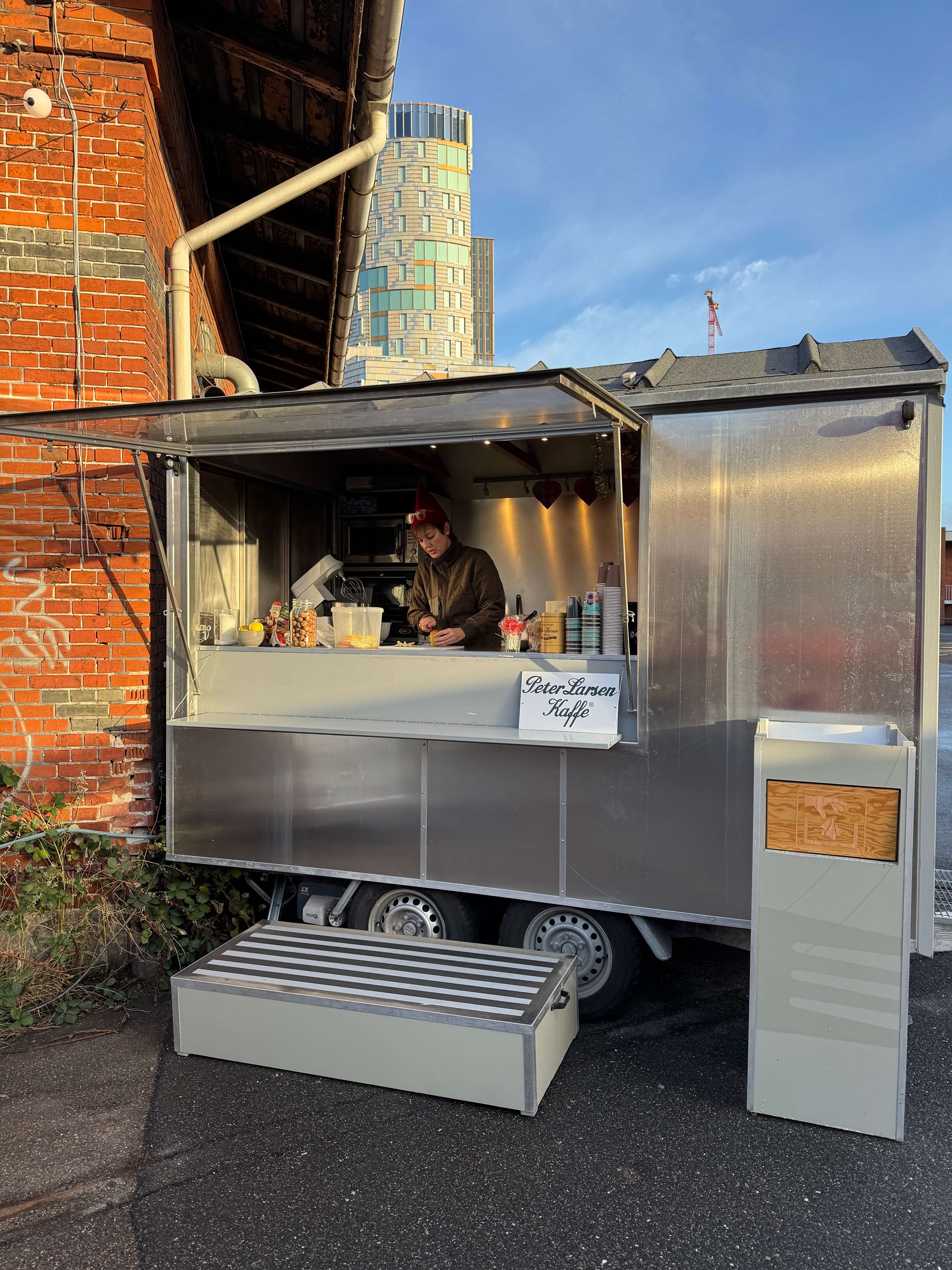 TO GO giver plads til at møde kunderne i øjenhøjde. De to store luger er lette at åbne og giver vognen et indbydende udseende. Vognen er udstyret med ovn, mikroovn og køleskab, den har god arbejdsplads og vasken kan tilsluttes rindende vand. Her kan I nemt tilberede og anrette de lækreste retter til jeres kunder, medarbejdere eller gæster.